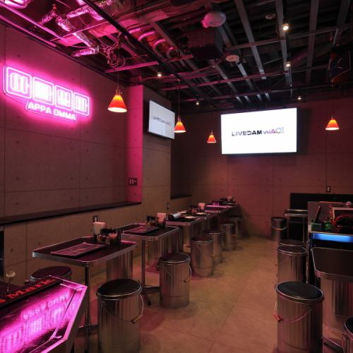 韓国らしいオシャレさと大人向けの落ち着いた雰囲気が共存する店内。ピンクのネオンが店名を彩り、打ちっぱなしの床や壁がモダンで洗練された空間を演出。カウンター席、テーブル席、ソファ席があり、仕事帰りやデート、女子会など幅広いシーンでリラックスしてお過ごしいただけます。楽しいひとときをお過ごしください♪